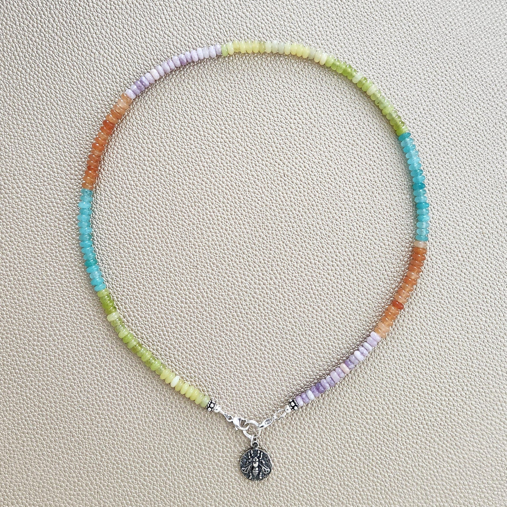 0--DESERT MORNING MINI-MINI GEMSTONE NECKLACE W/ 925 SILVER BEE--16"