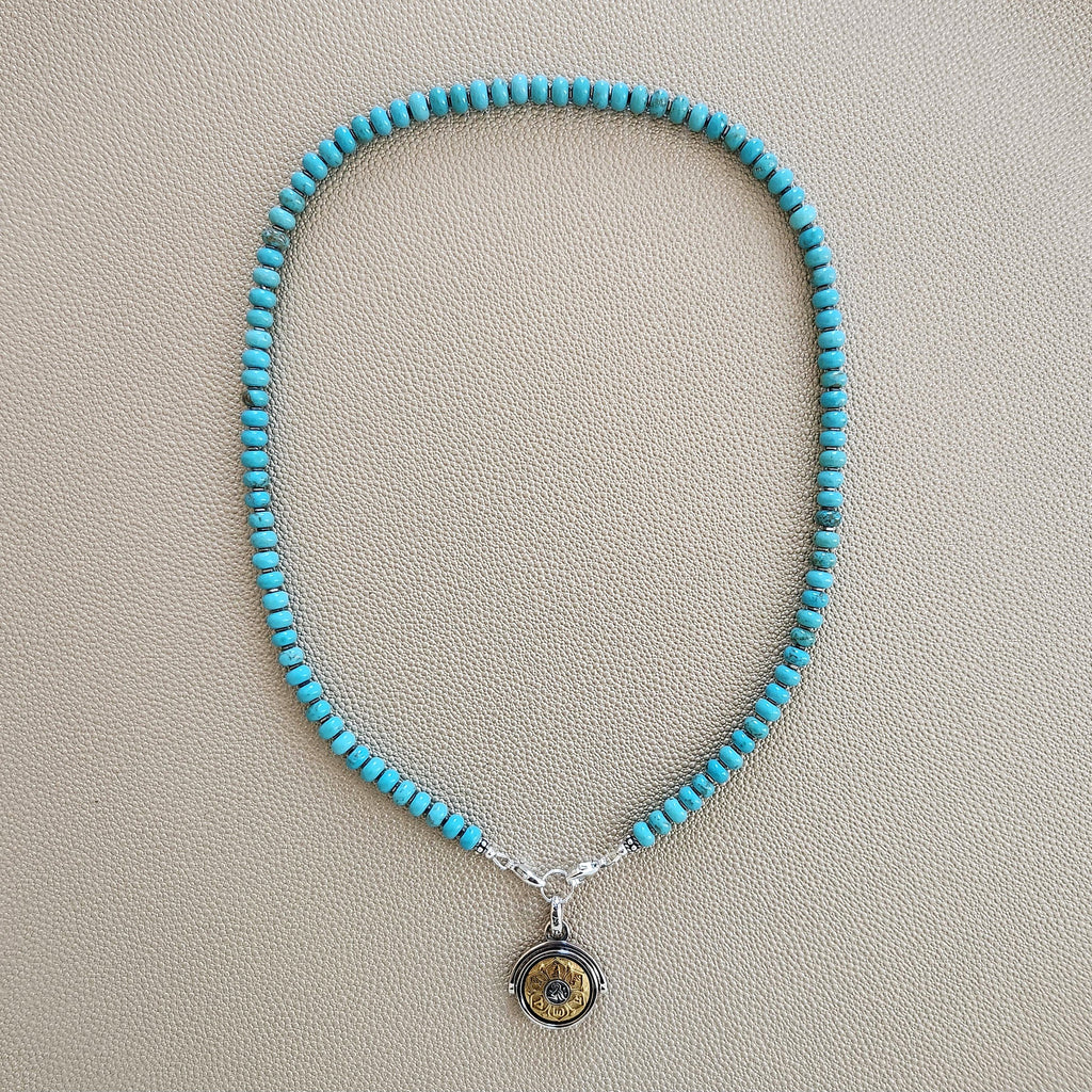 Home>2--NECKLACES>0--HAPPY IN WAIMANALO TURQUOISE NECKLACE W/ OM PENDANT--20"
