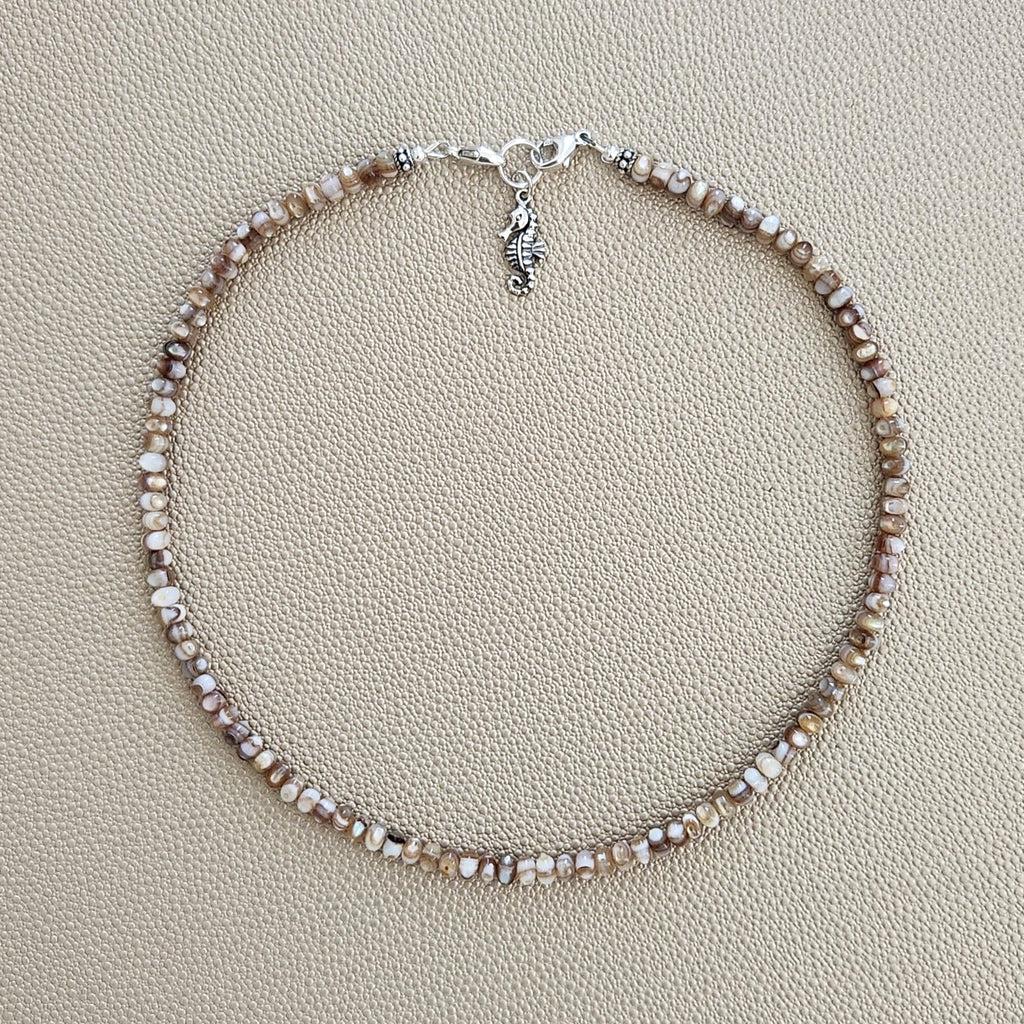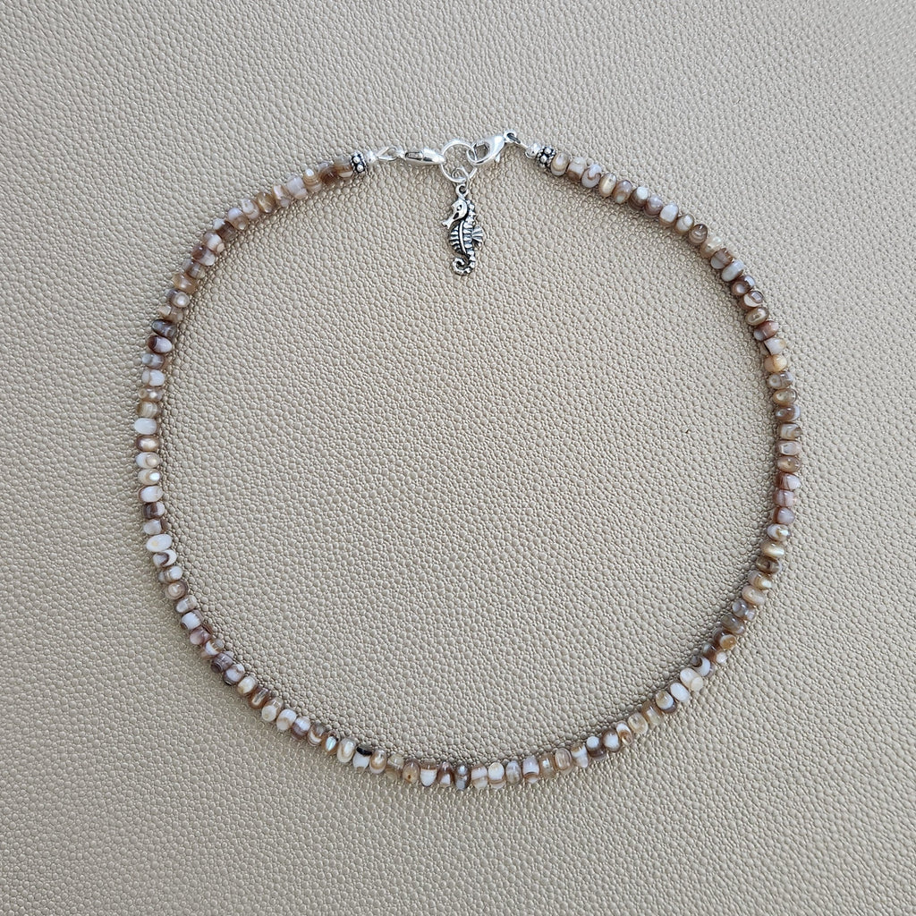 0--MINI MOTHER OF PEARL NECKLACE W/ MINI 925 SEAHORSE--16"