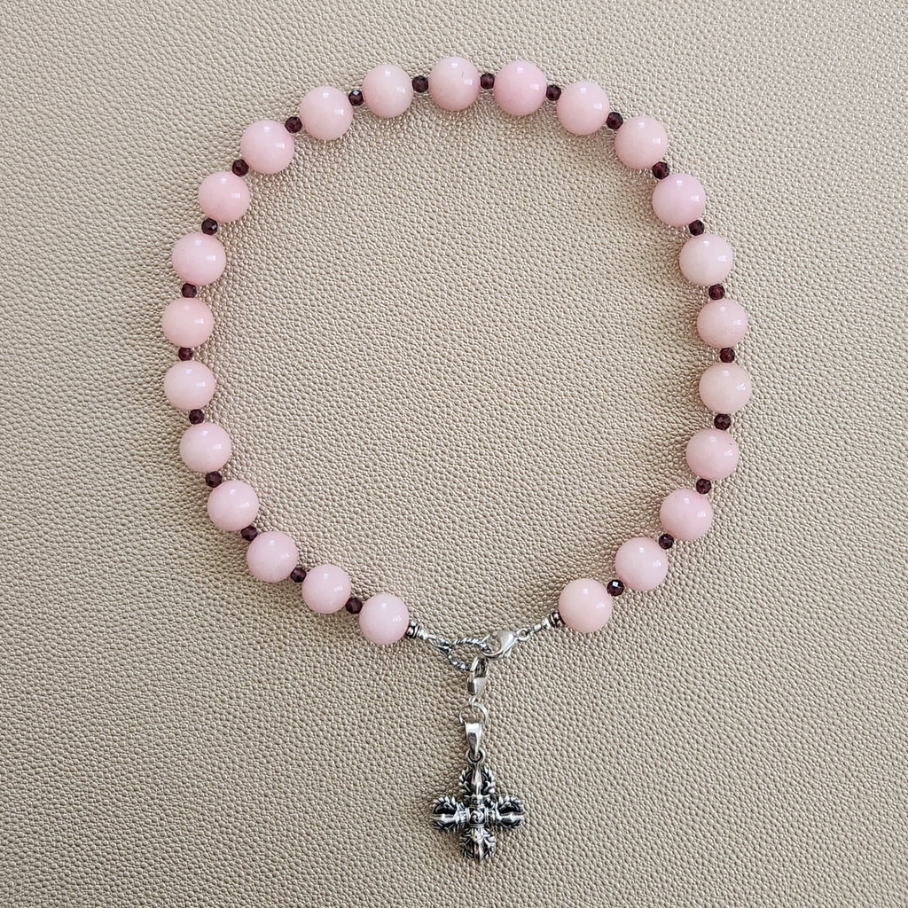 Accented with 4mm faceted garnet gemstones.