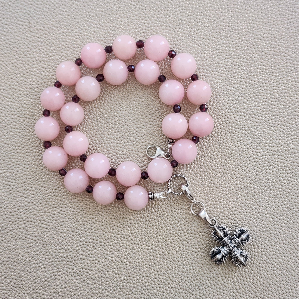 PINK AGATE NECKLACE WITH 925 DOUBLE DORJE PENDANT--16"