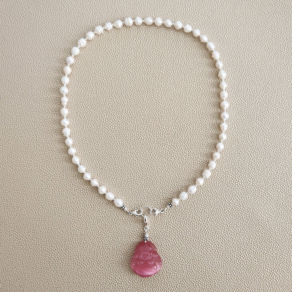 Home>2--NECKLACES>0--MINI BAROQUE PEARL NECKLACE W/ HAPPY BUDDHA--18"