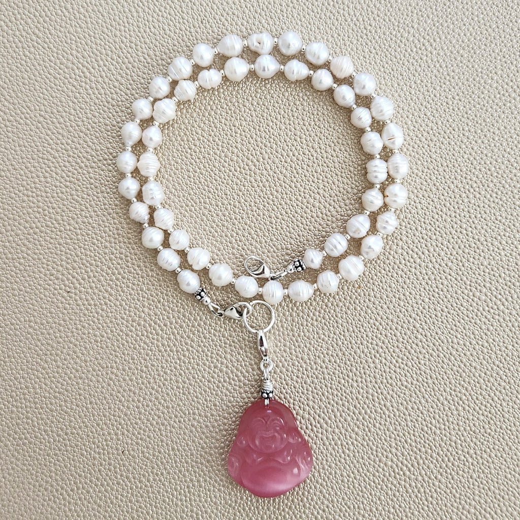 0--MINI BAROQUE PEARL NECKLACE W/ HAPPY BUDDHA--18"