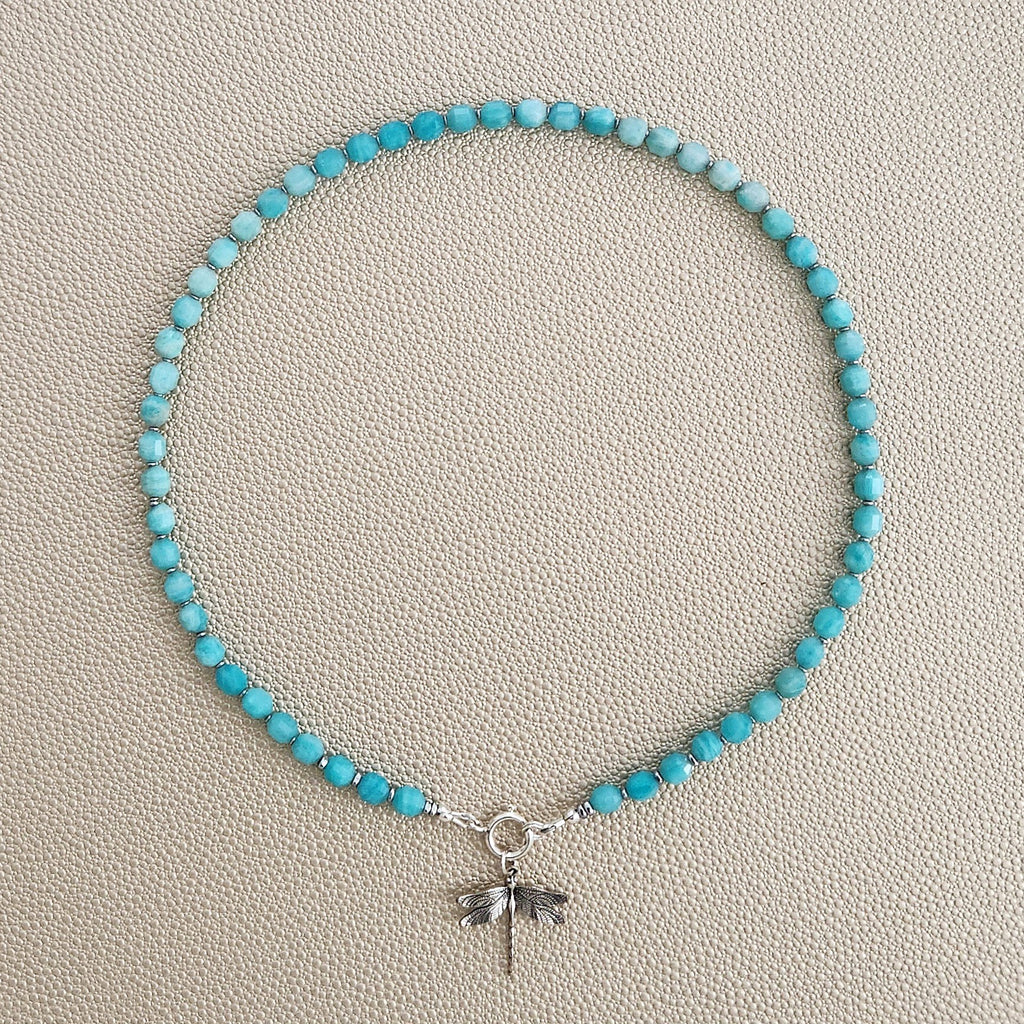 0--AMAZONITE NECKLACE W/ MINI 925 DRAGONFLY--16"