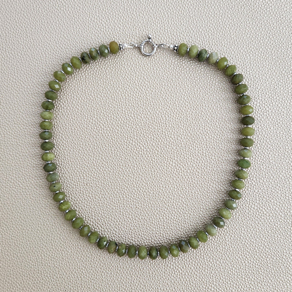 - Necklace with natural green jade semi-precious gemstones with facets (5x8mm).