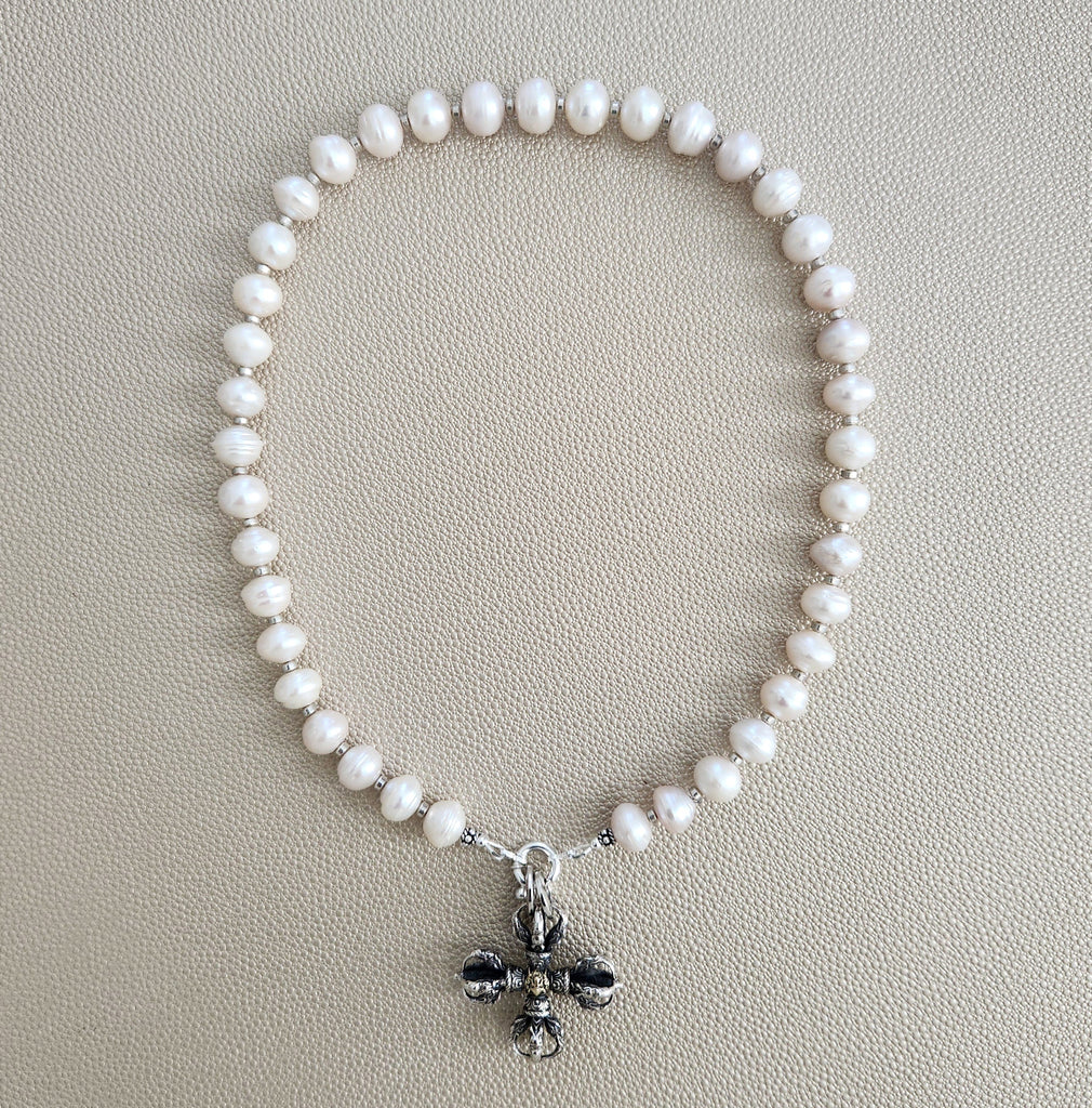 0--WHITE EDISON PEARL NECKLACEW/ 925 DORJE--18"