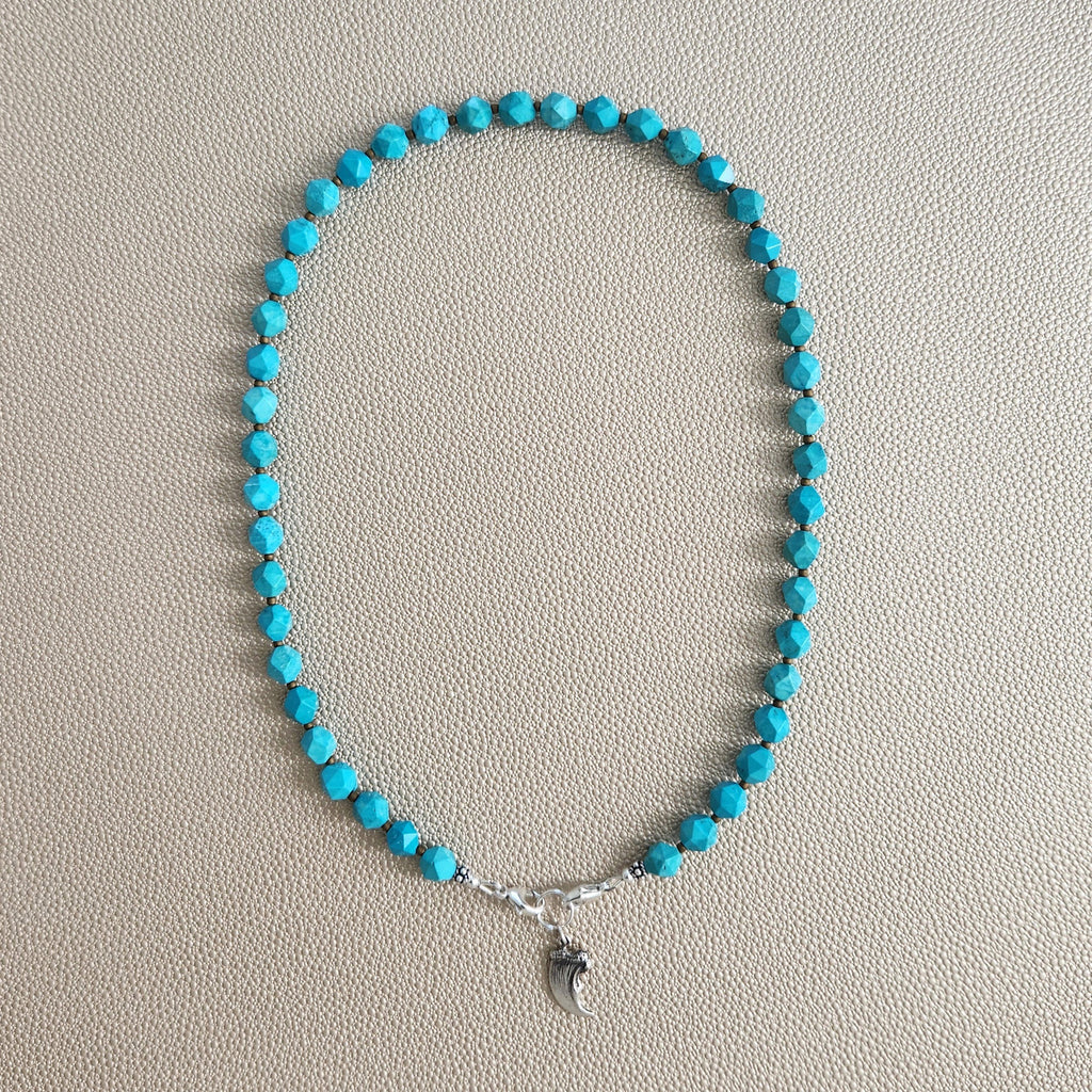 0--STAR CUT TURQUOISE NECKLACE W/ 925 CLAW--18"