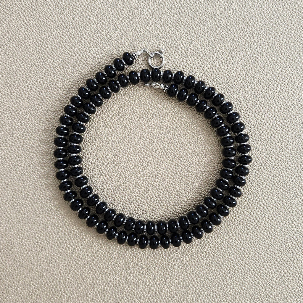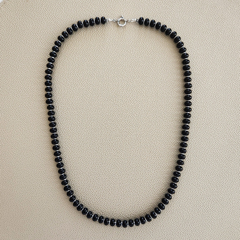 • Necklace made with black onyx semi-precious gemstones (5x8mm)