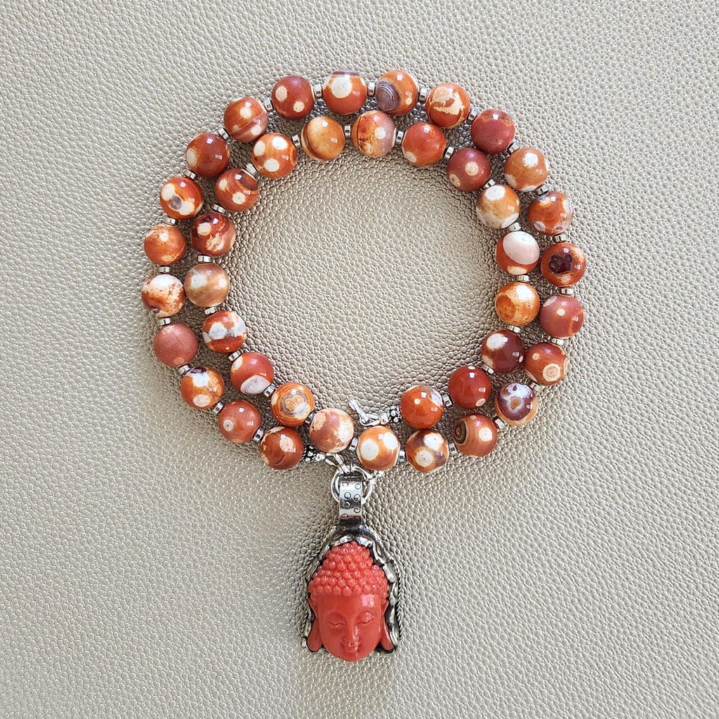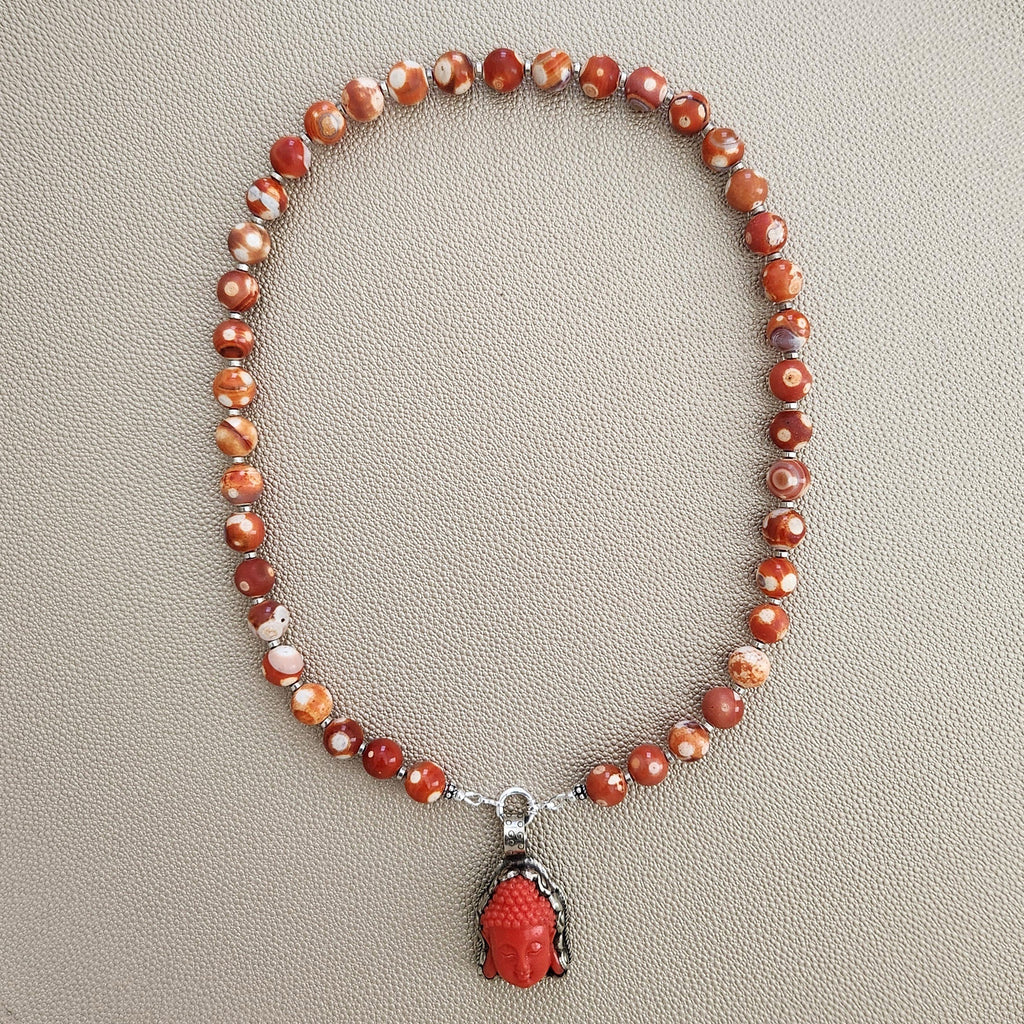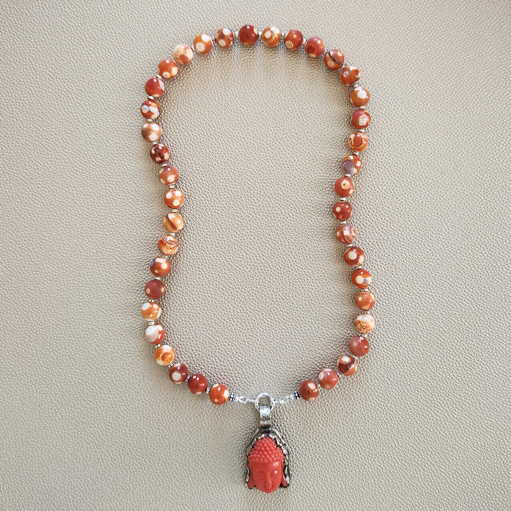0--ORANGE DREAM FIRE AGATE NECKLACE W/ BUDDHA PENDANT--20"