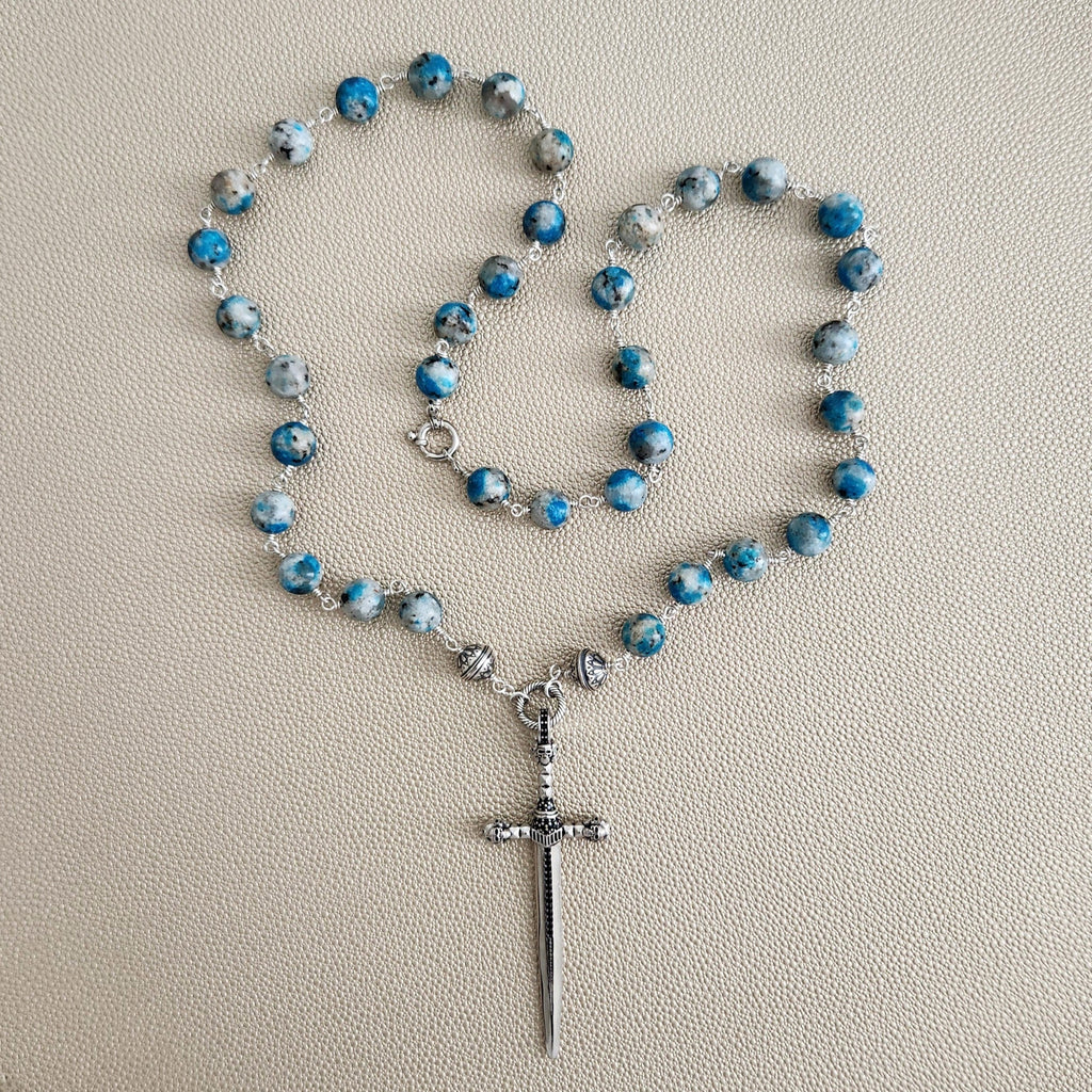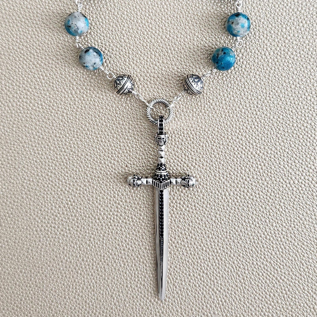 00--K2 STONE NECKLACE W/ SKULL SWORD PENDANT-29"