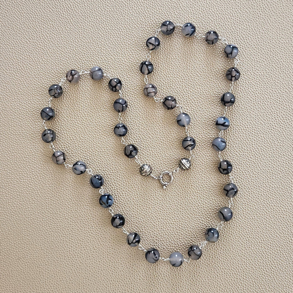 - Necklace with black white dragon vein agate semi-precious gemstones (10mm).