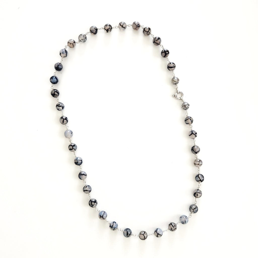 00--BLACK WHITE DRAGON VEIN AGATE NECKLACE--27"