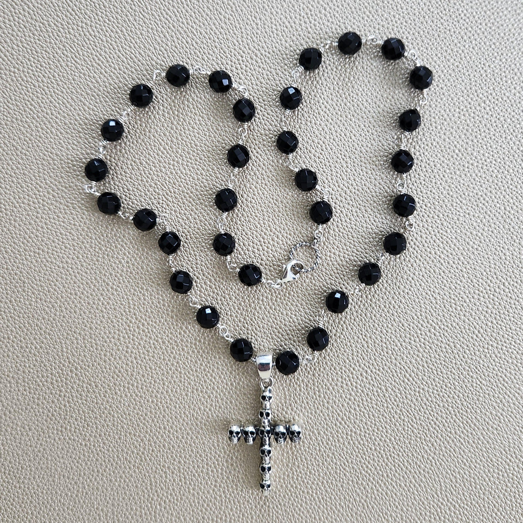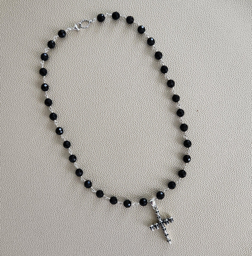 00--BLACK ONYX NECKLACE WITH SKULL CROSS-21"