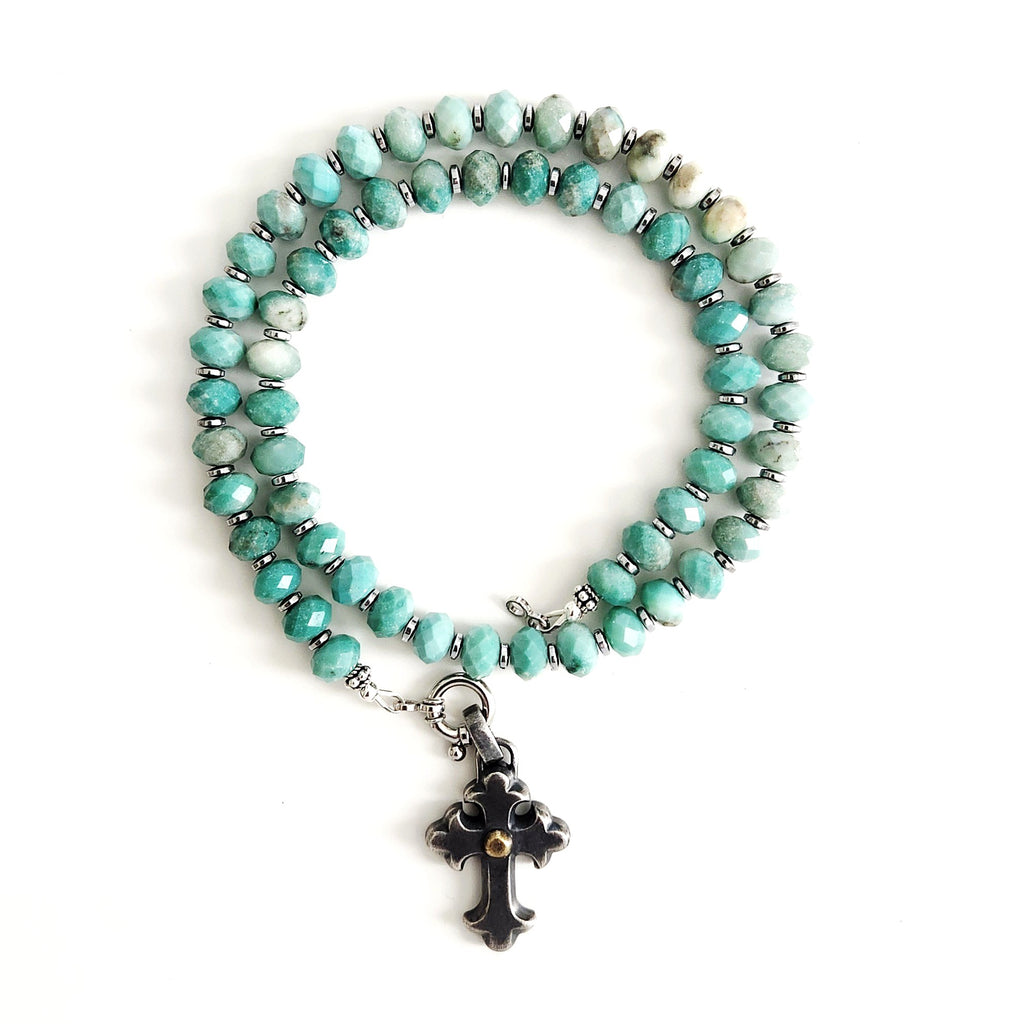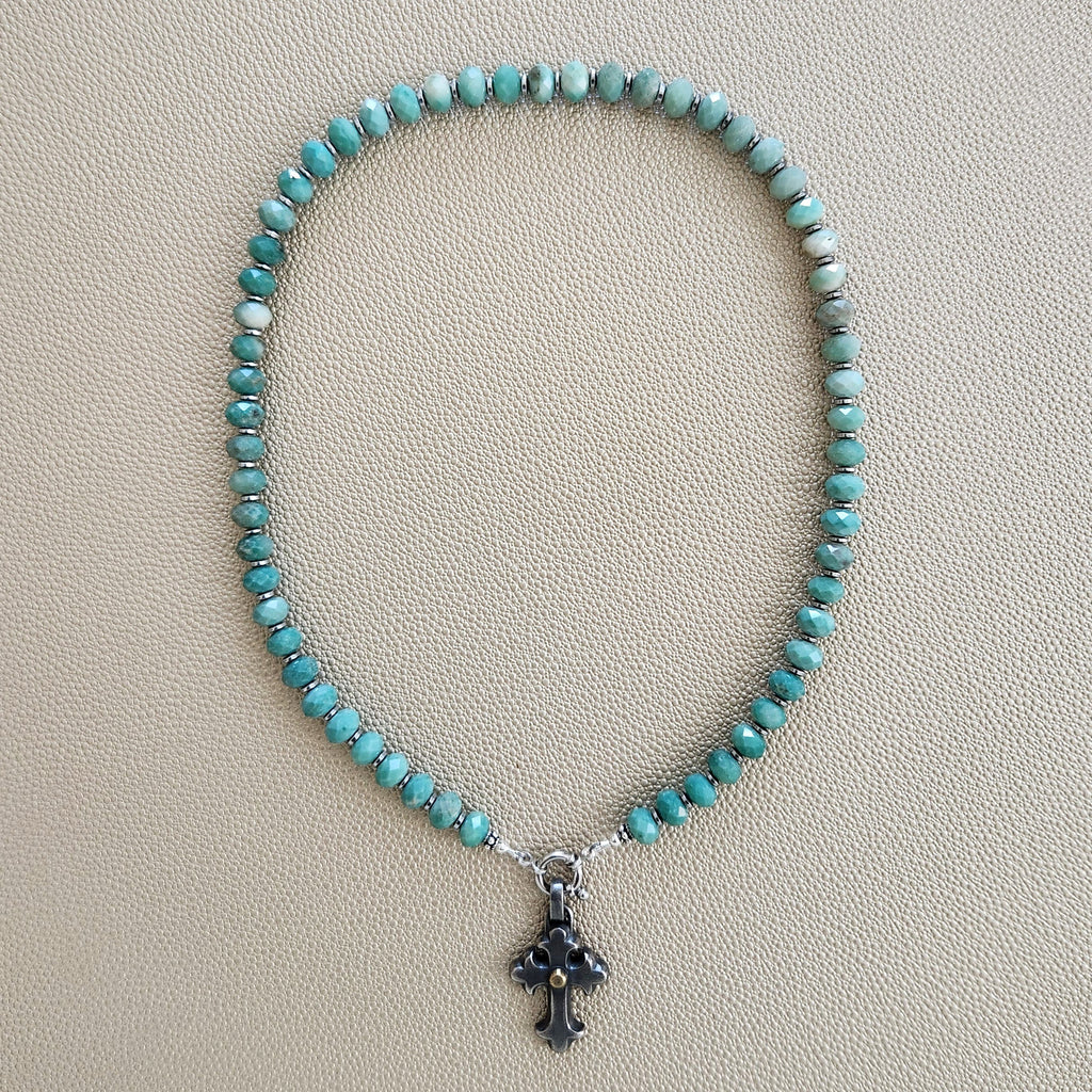 CHRYSOPRASE NECKLACE WITH 925 SILVER CROSS--18"