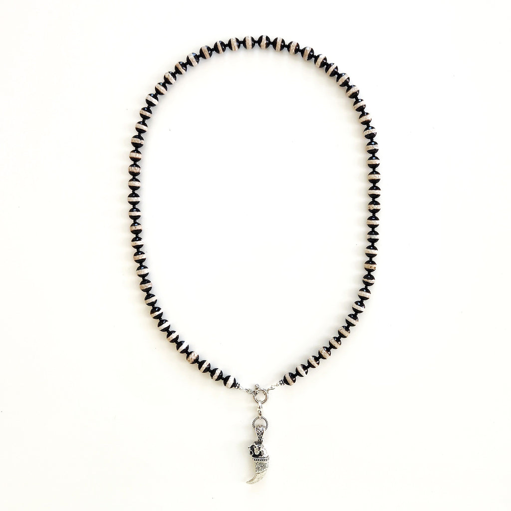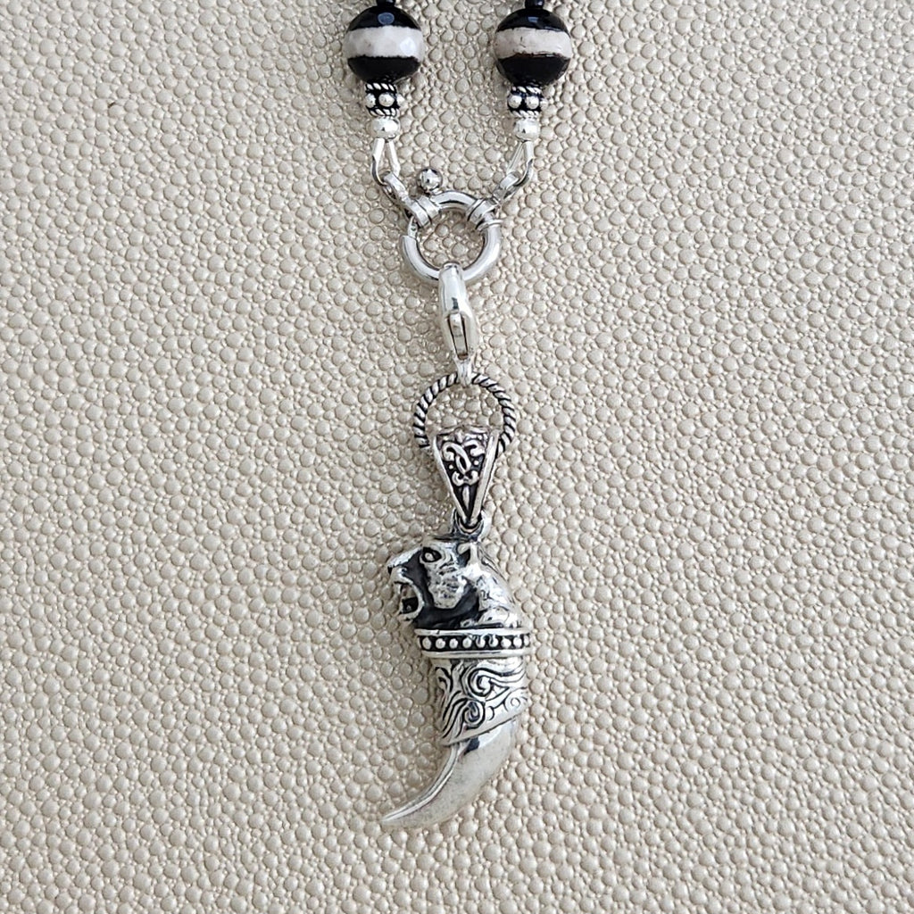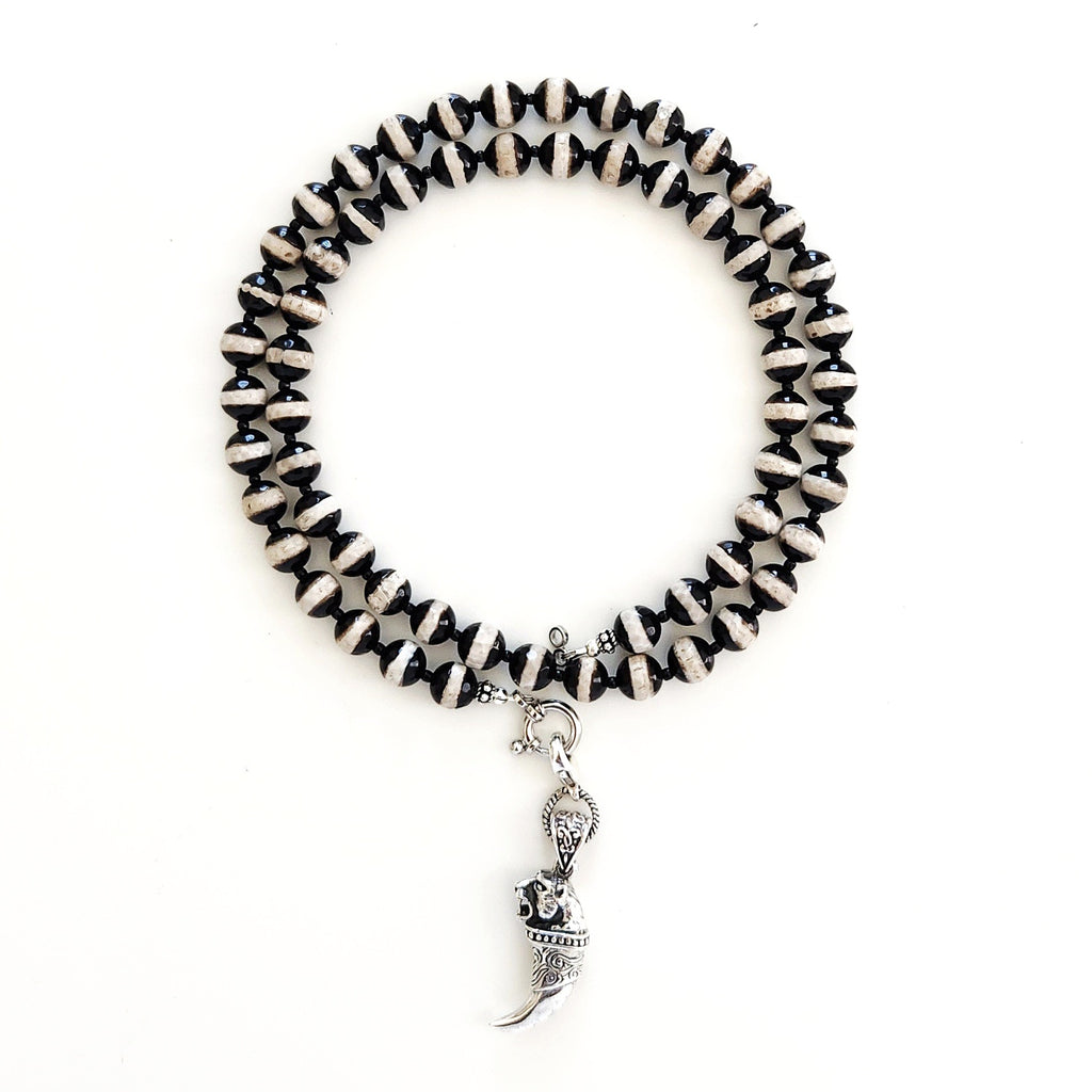 00--STRIPED TIBETAN AGATE NECKLACEW/ TIGER CLAW PENDANT--24"