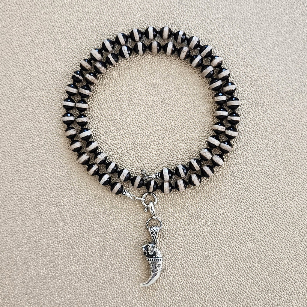 - Necklace made with black & white striped Tibetan agate with facets (8mm)