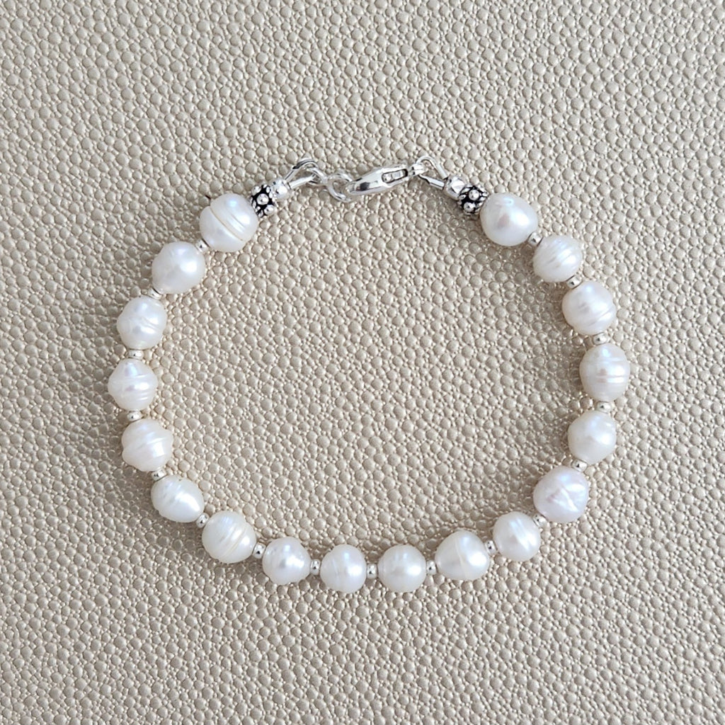 MINI WHITE BAROQUE PEARL BRAC--7"