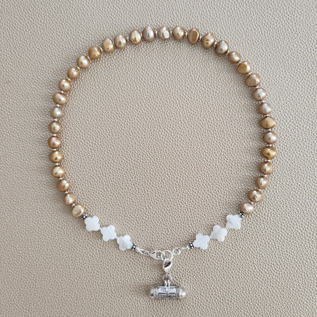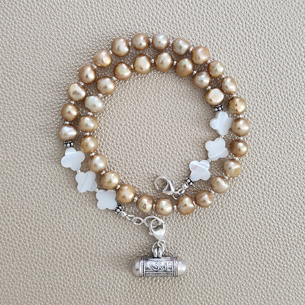 CHAMPAGNE GOLD PEARL NECKLACE W/ 925 PENDANT--16"