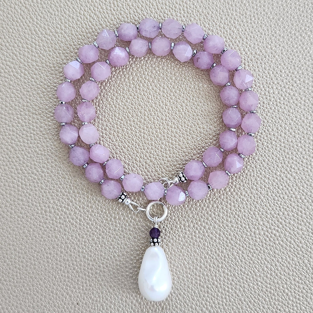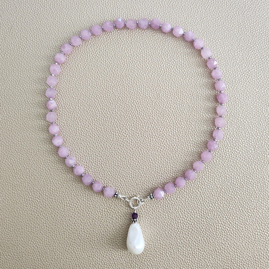 0--STAR CUT LAVENDER JADE NECKLACE W/ PEARL DROP--16"