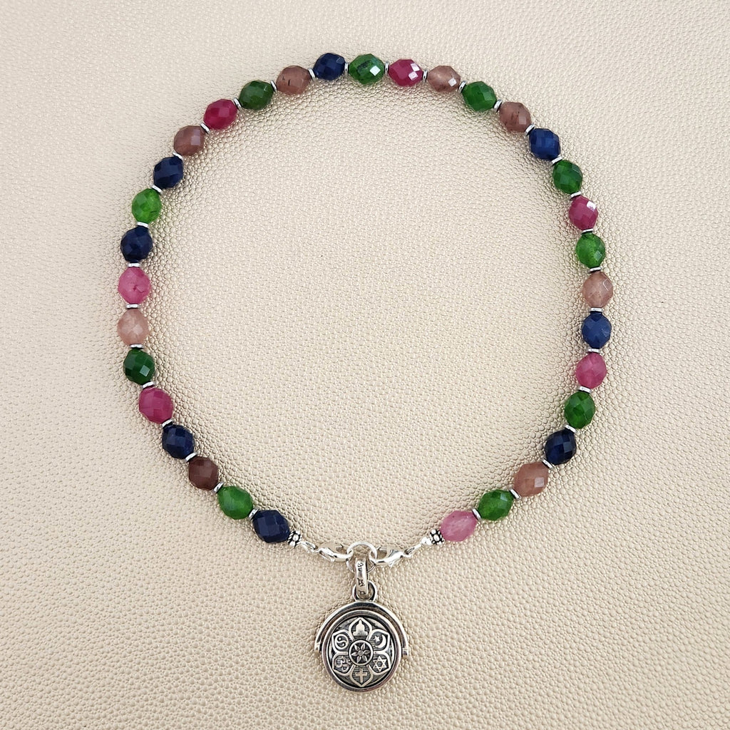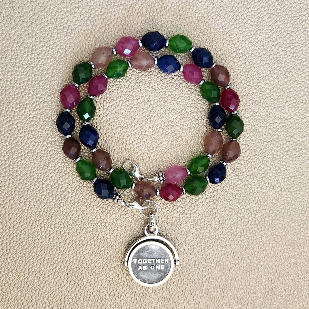 0--MIDNIGHT RITUALS MULTICOLOR JADE NECKLACE W/ UNITY PENDANT--15.75"