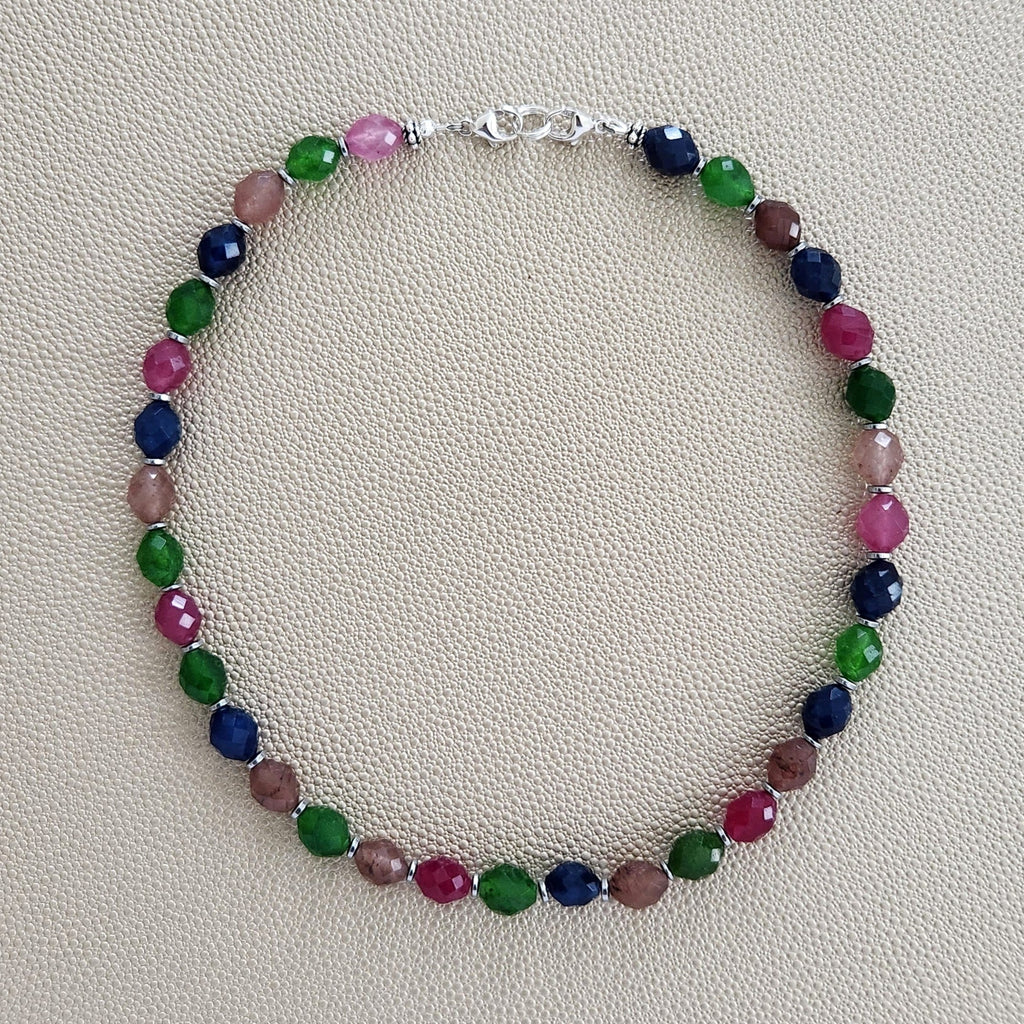 - Multicolored jade semi-precious gemstones (8x10mm oval)