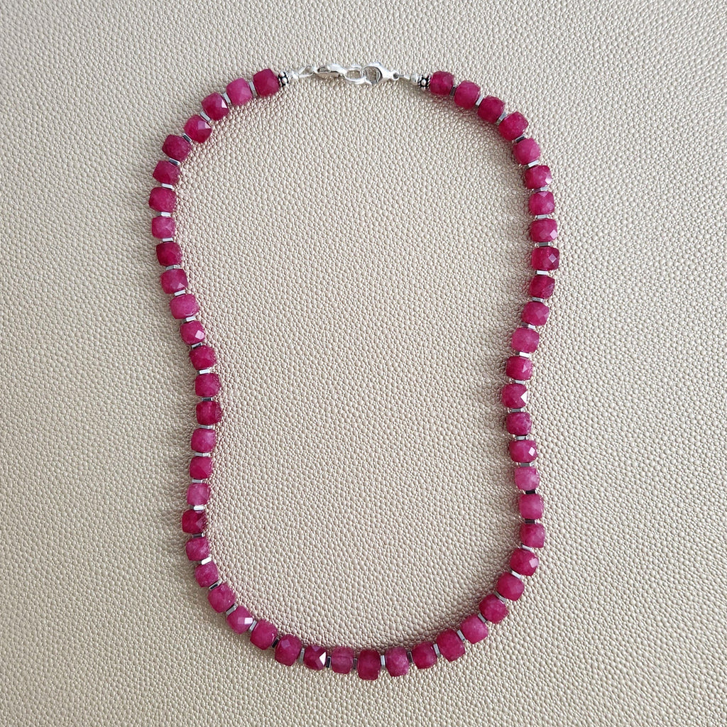 - Pink colored jade necklace (7mm cube)