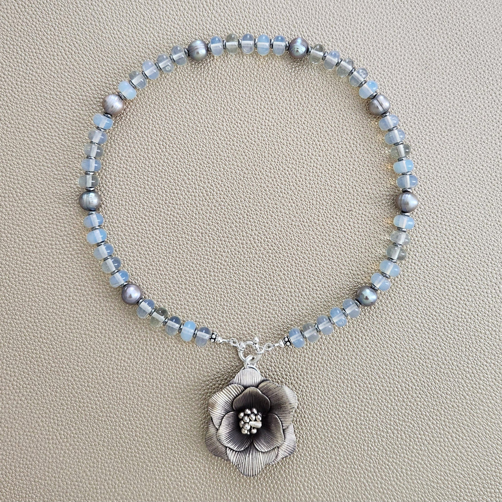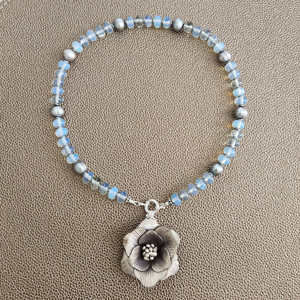 0--OPALITE NECKLACE W/ POPPY PENDANT--16"