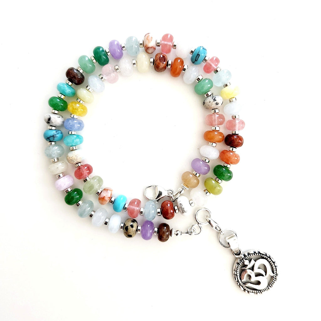 JELLYBEAN CANDY COLORED MIXED GEMSTONE NECKLACE W/ 925 OM PENDANT-18"