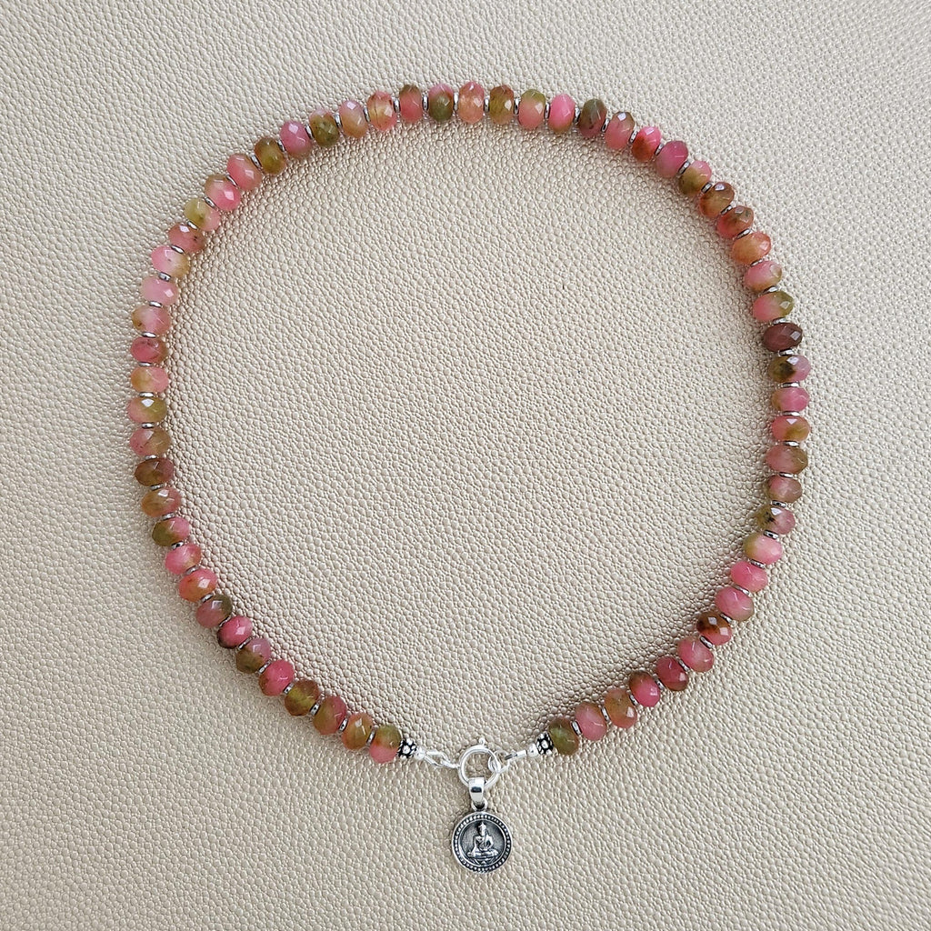- Necklace with pink green colored jade semi-precious gemstones (5x8mm).