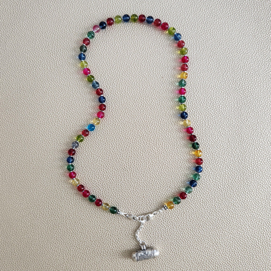 • Necklace with 6mm multi-color crackle quartz crystal necklace