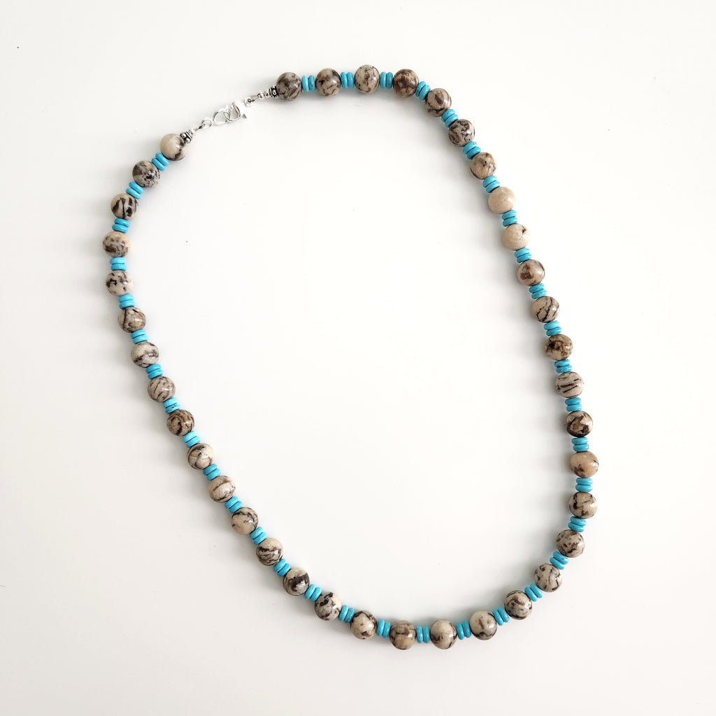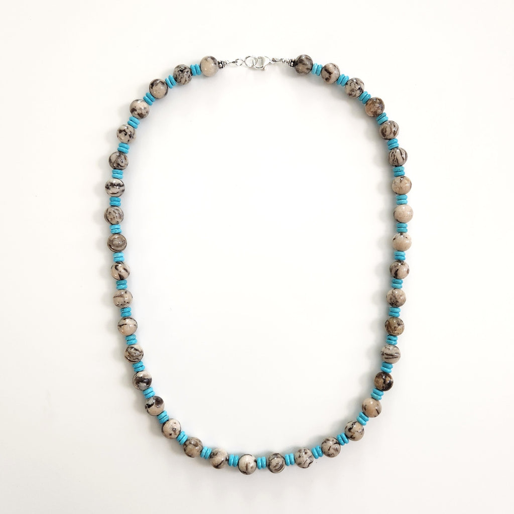 ZEBRAS LOVE TURQUOISE BEADED NECKLACE--24"