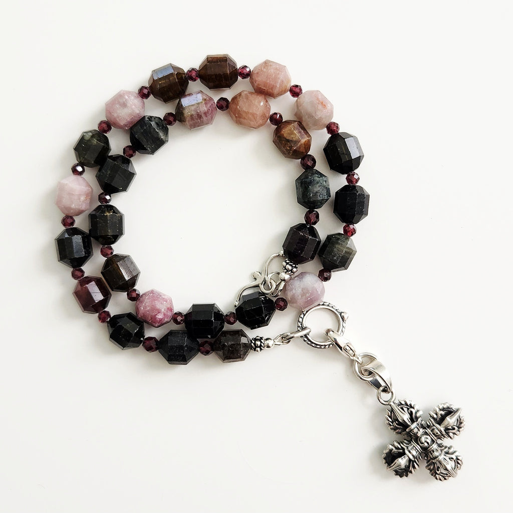 TOURMALINE NECKLACE WITH 925 DOUBLE DORJE CROSS
