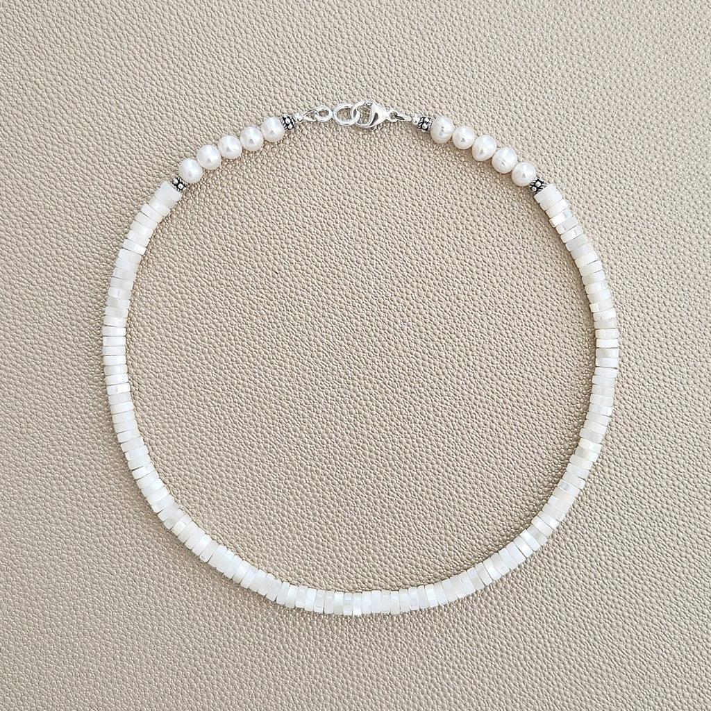 - Mother of pearl heishi necklace (stones 2X6mm)