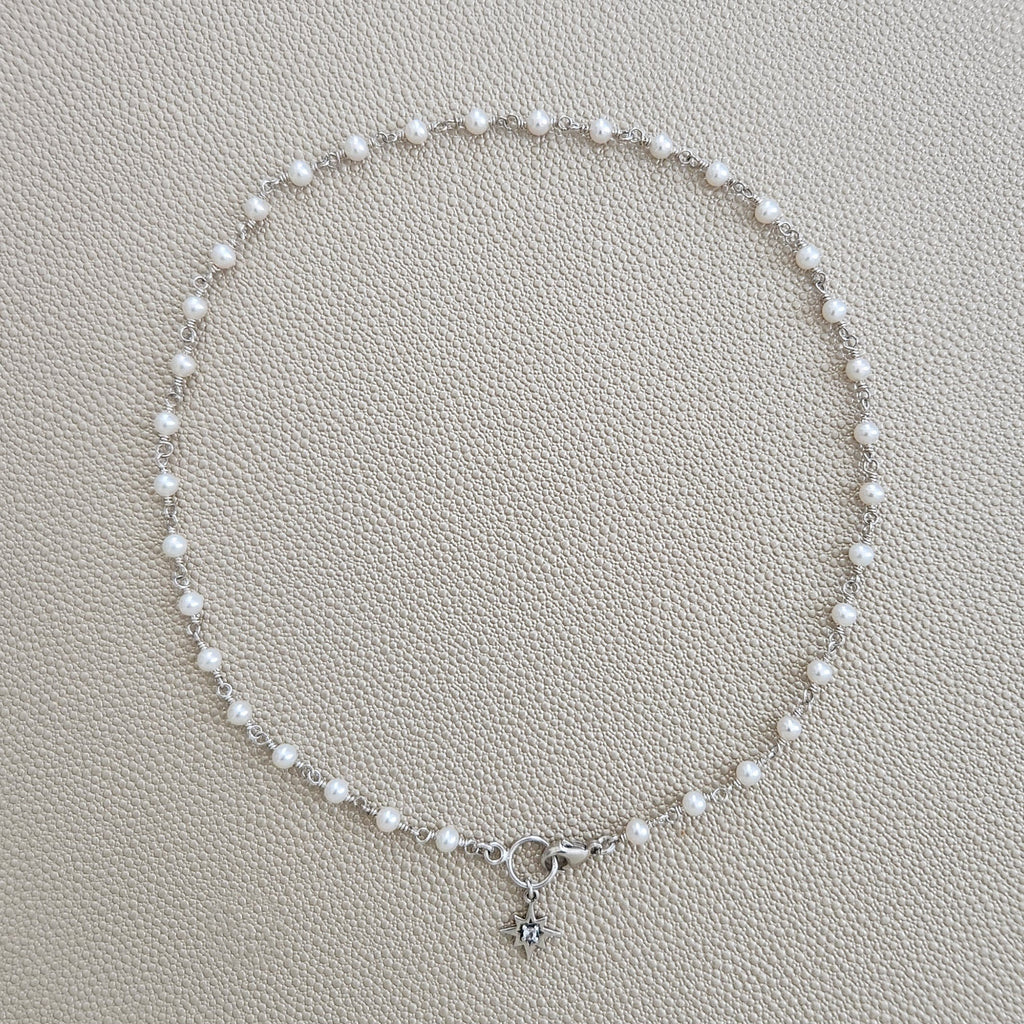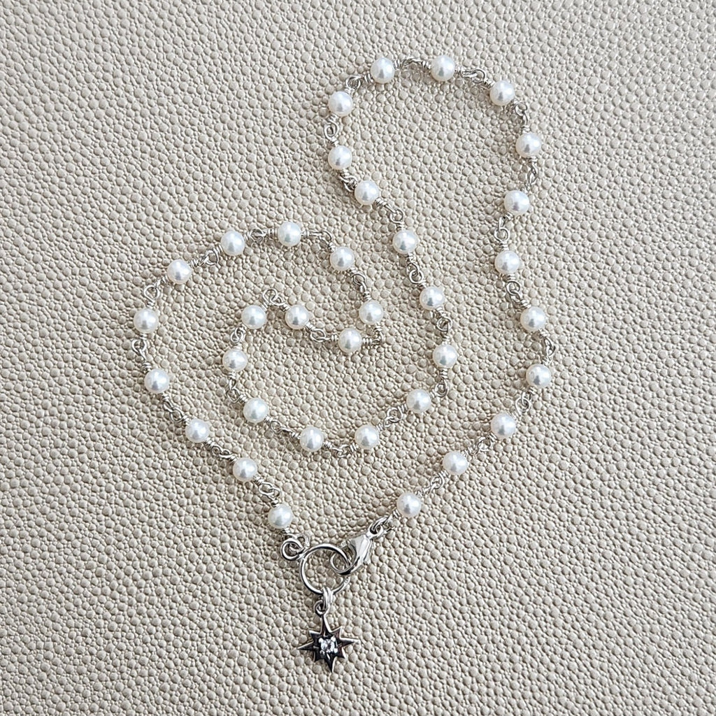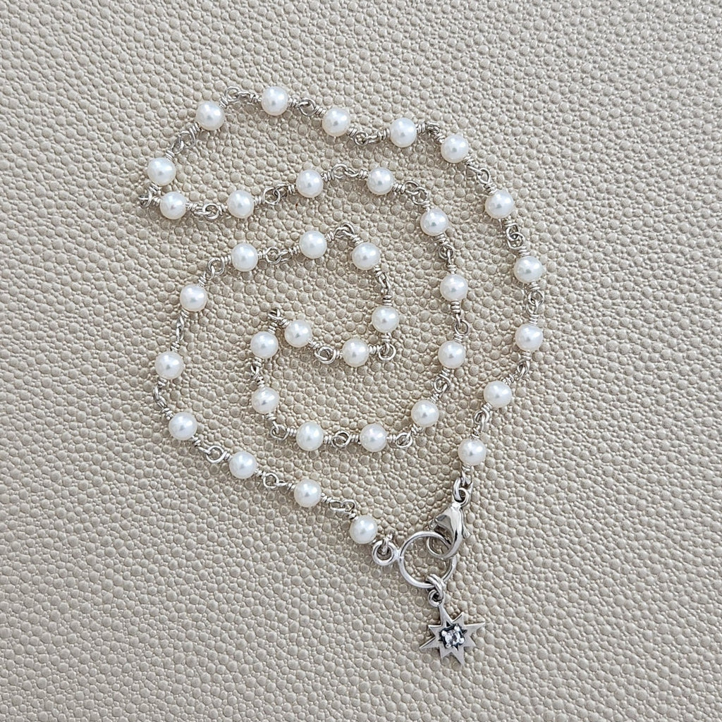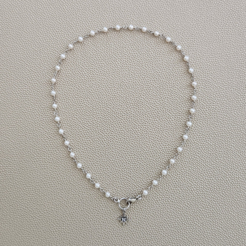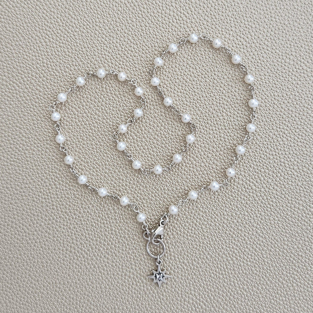 MINI WHITE PEARL NECKLACE WITH 8 POINT STAR-16"
