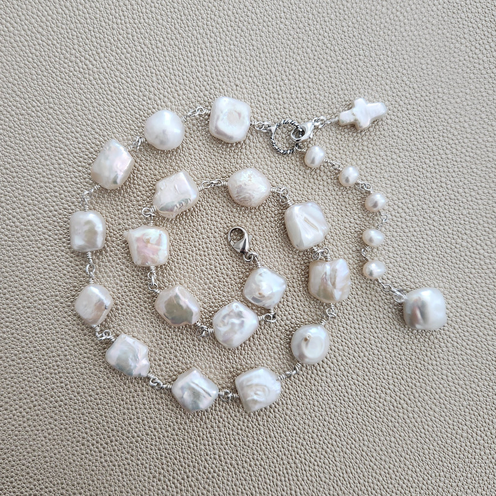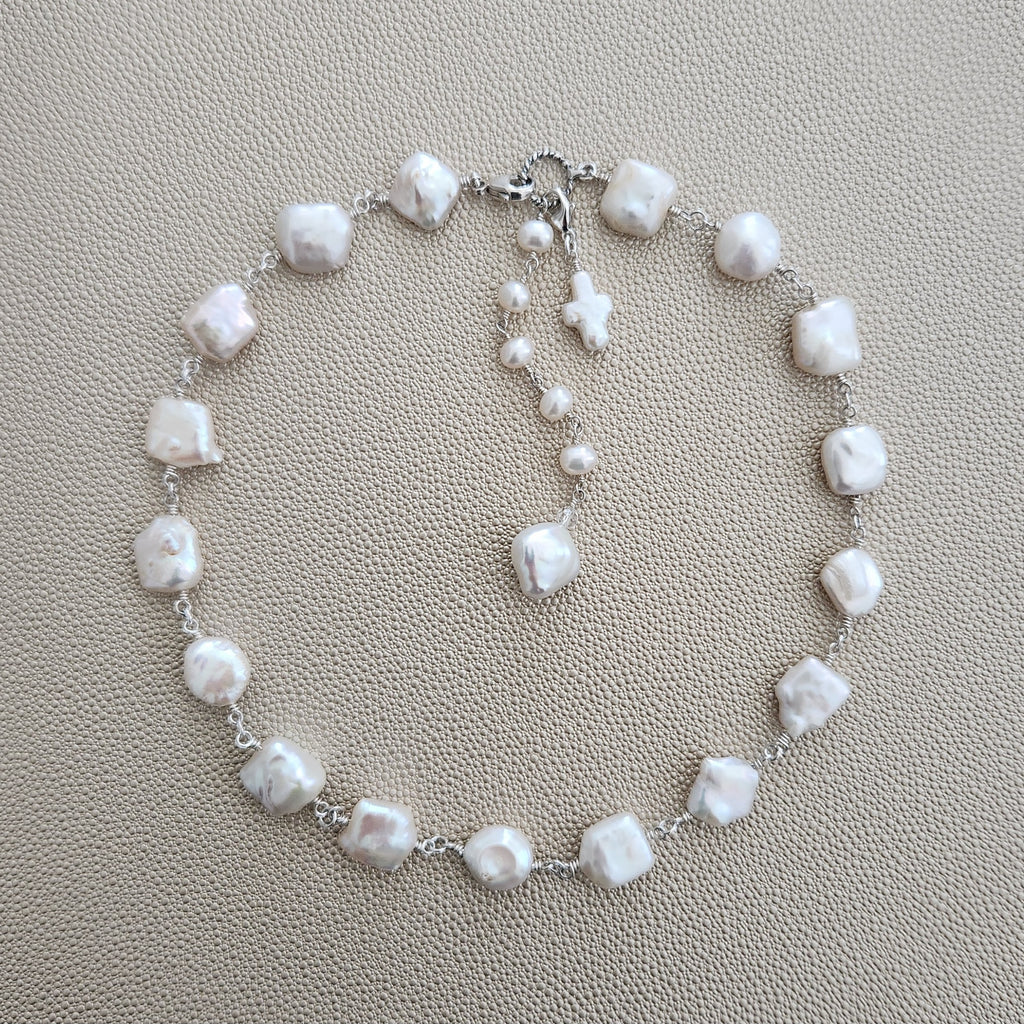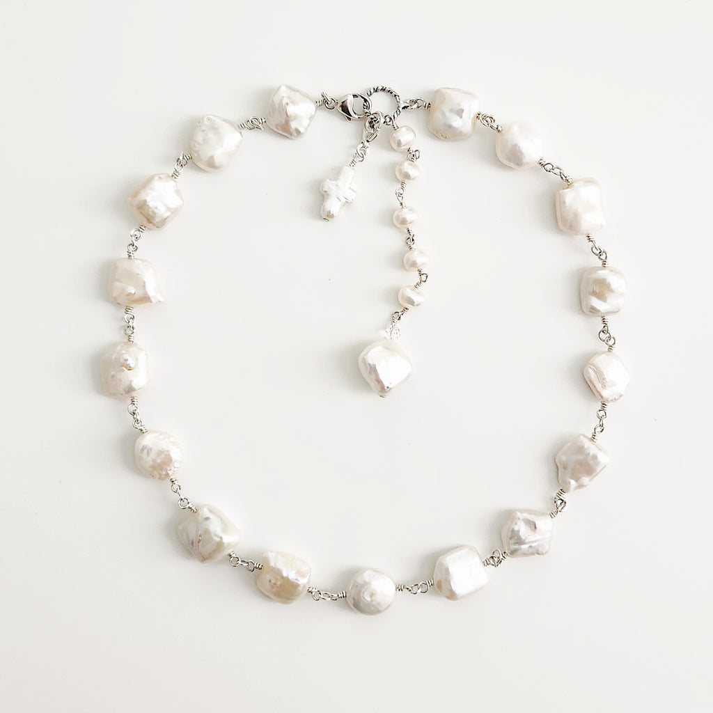 • White freshwater baroque pearl necklace