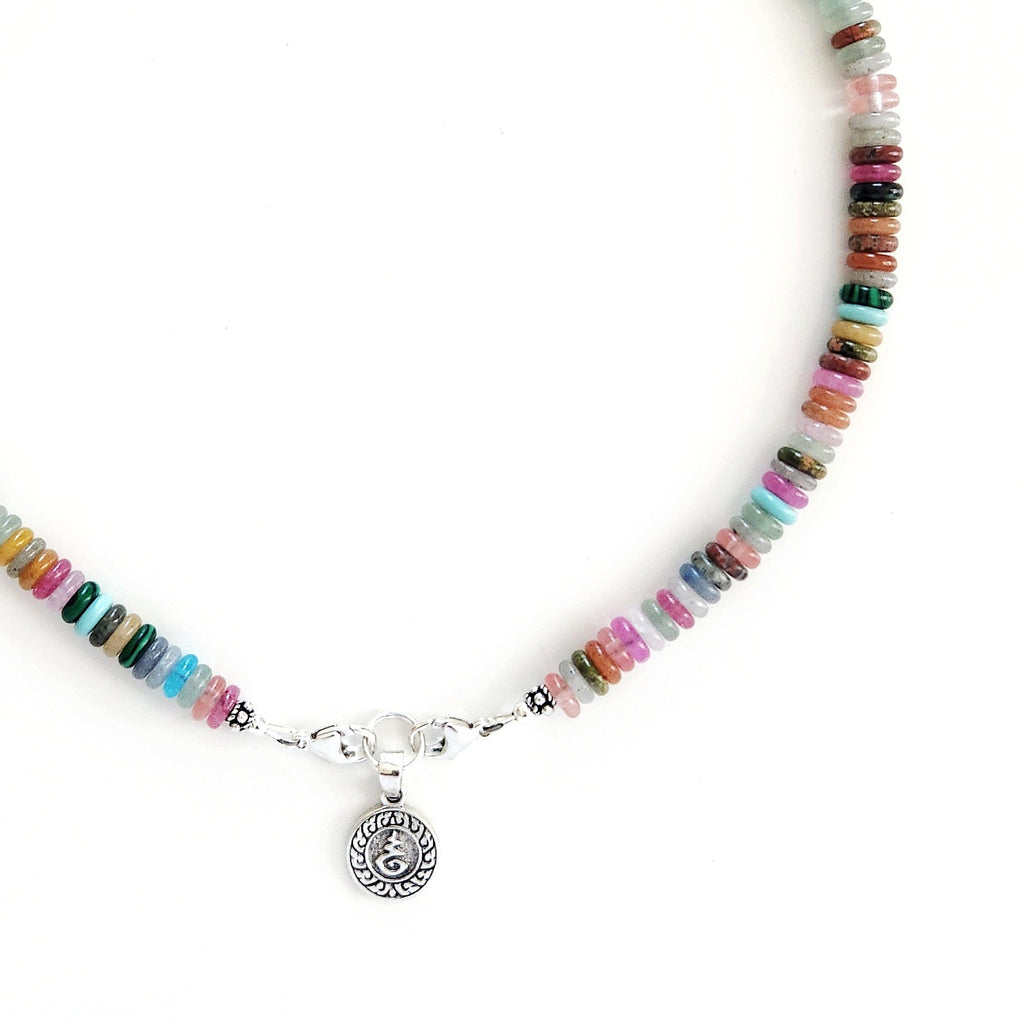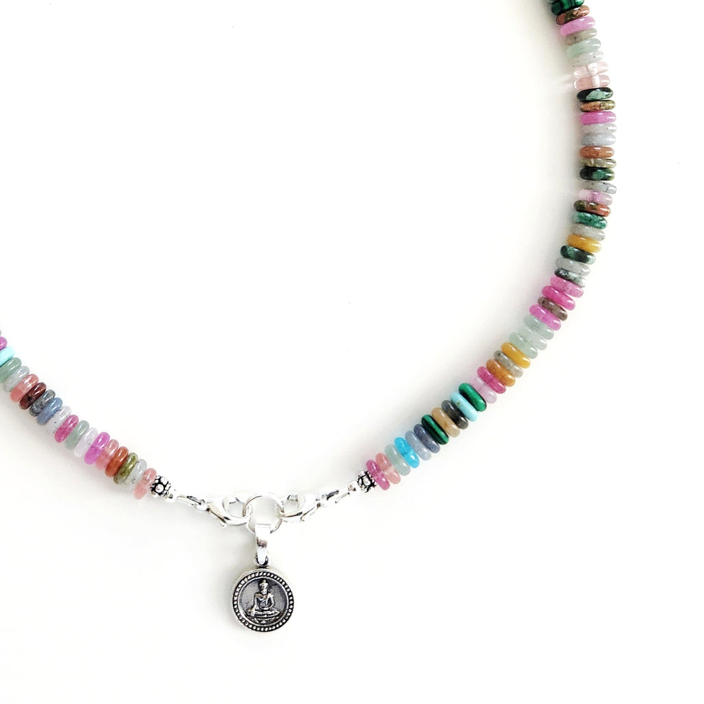 MIXED MINI GEMSTONE NECKLACE W/ MINI 925 BUDDHA CHARM-16"
