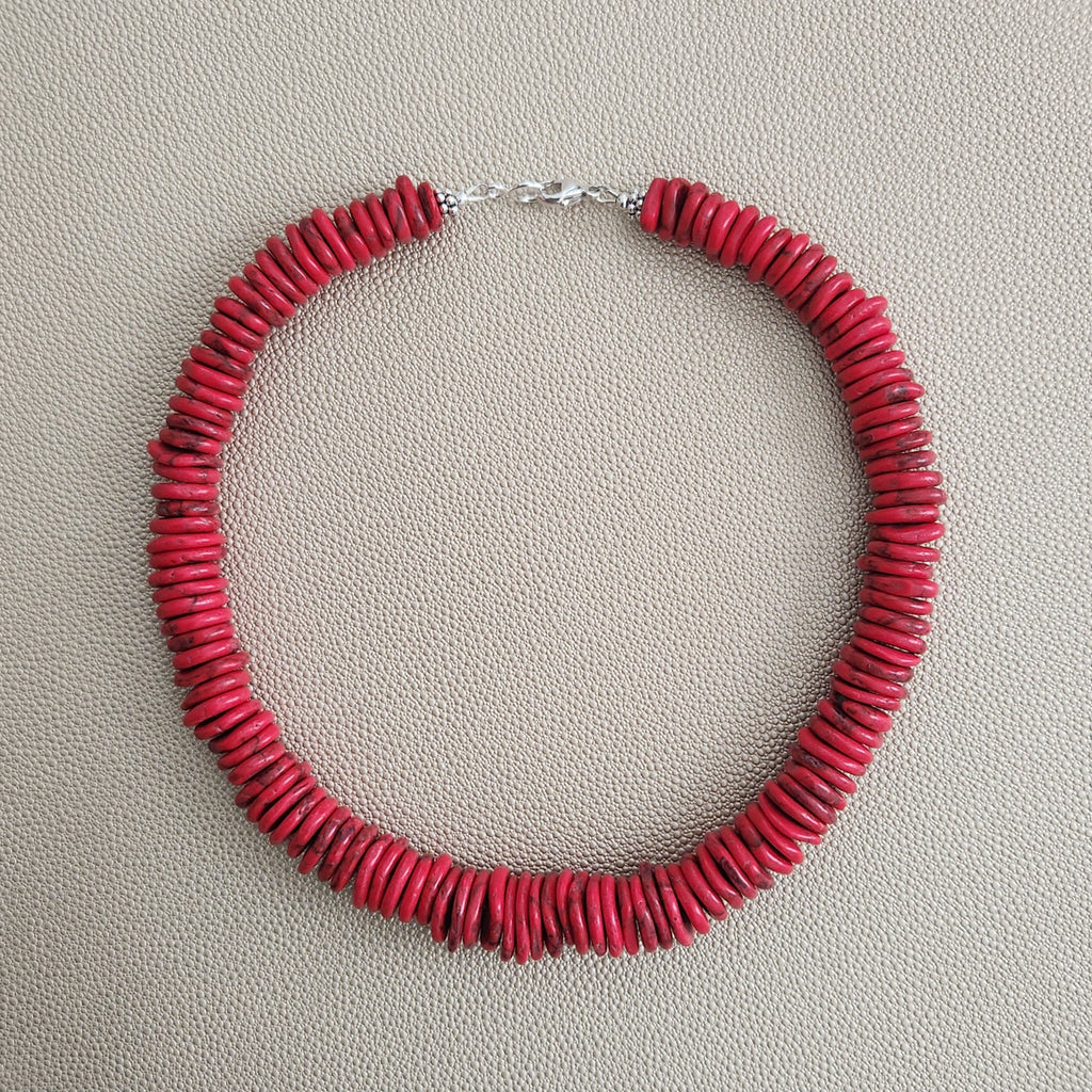 - Necklace with red colored magnesite turquoise disc (3x15mm)
