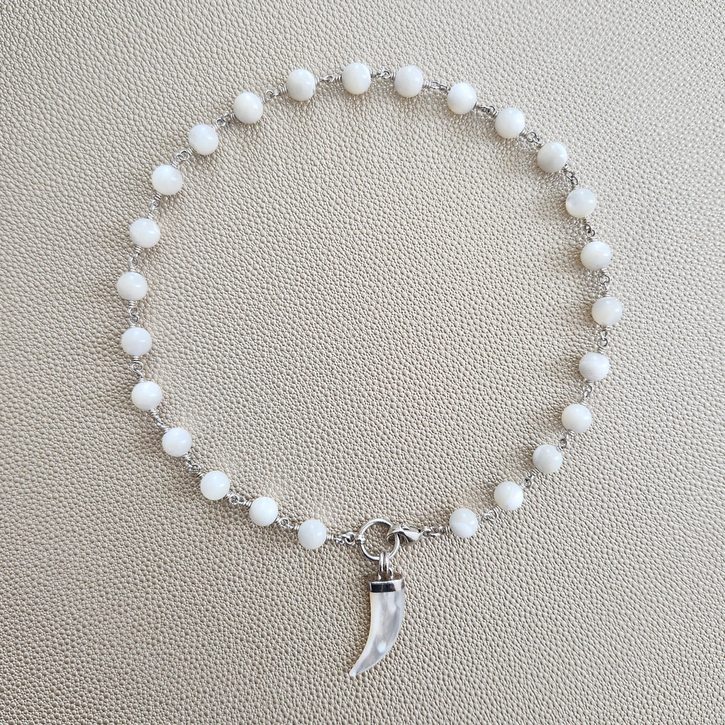 - 8MM MOTHER OF PEARL SEMI-PRECIOUS GEMSTONES NECKLACE