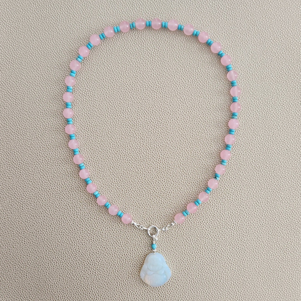 PINK JADE NECKLACE W/ HAPPY BUDDHA PENDANT-18"