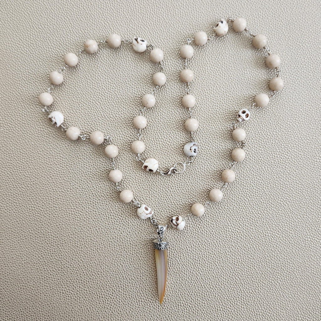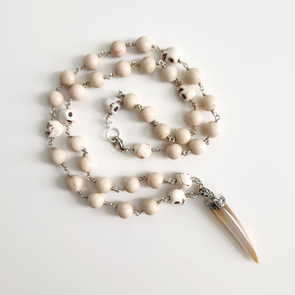 WOOD AGATE WITH SKULL BEADS NECKLACE-28"